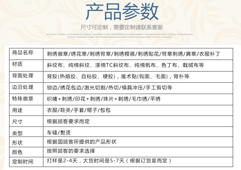 版期貨期:正常情況下打樣時間是3-5天,做大貨的時間是5-10天。由於款式、工藝、數量不同,時間可能會有出入。